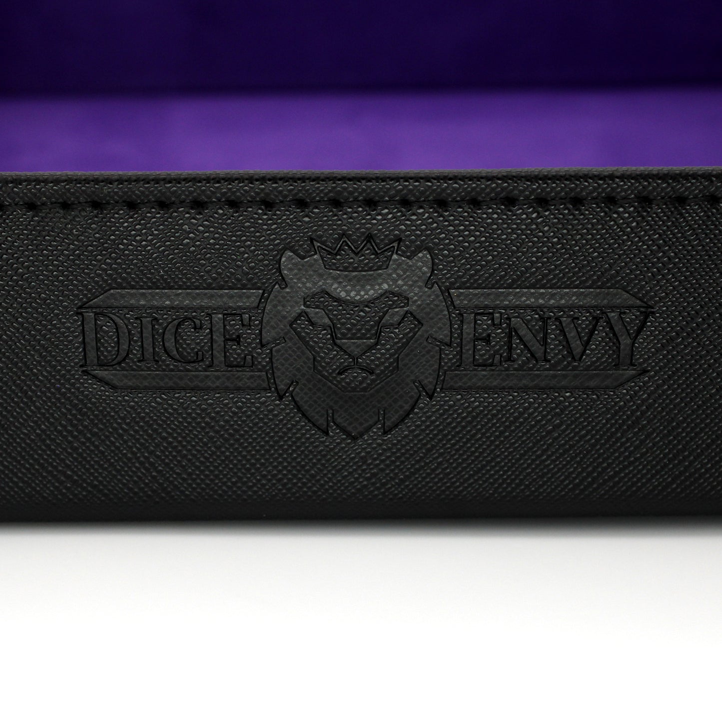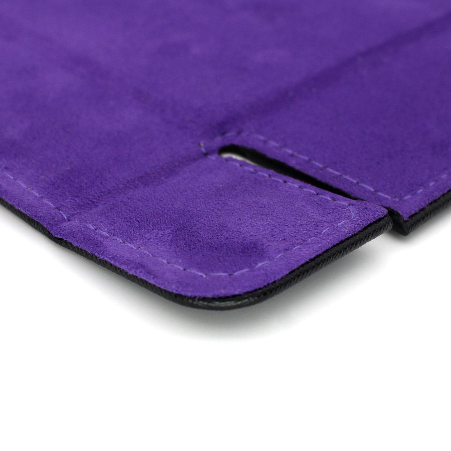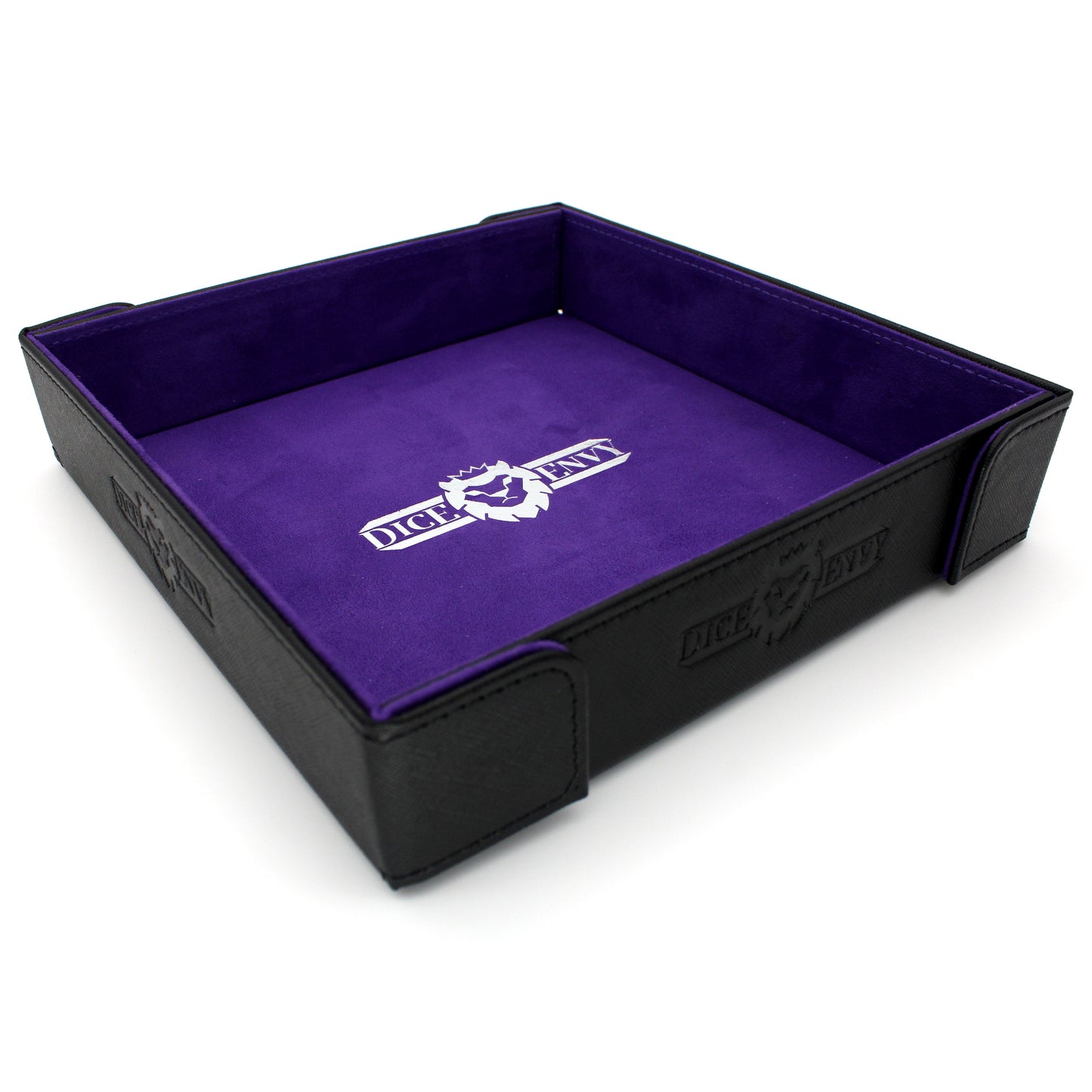Made of vegan leather and microsuede, our dice trays have hidden magnets that hold them together and are available in druid green, warlock purple, barbarian tan, cleric blue, rogue red, and necromancer black.